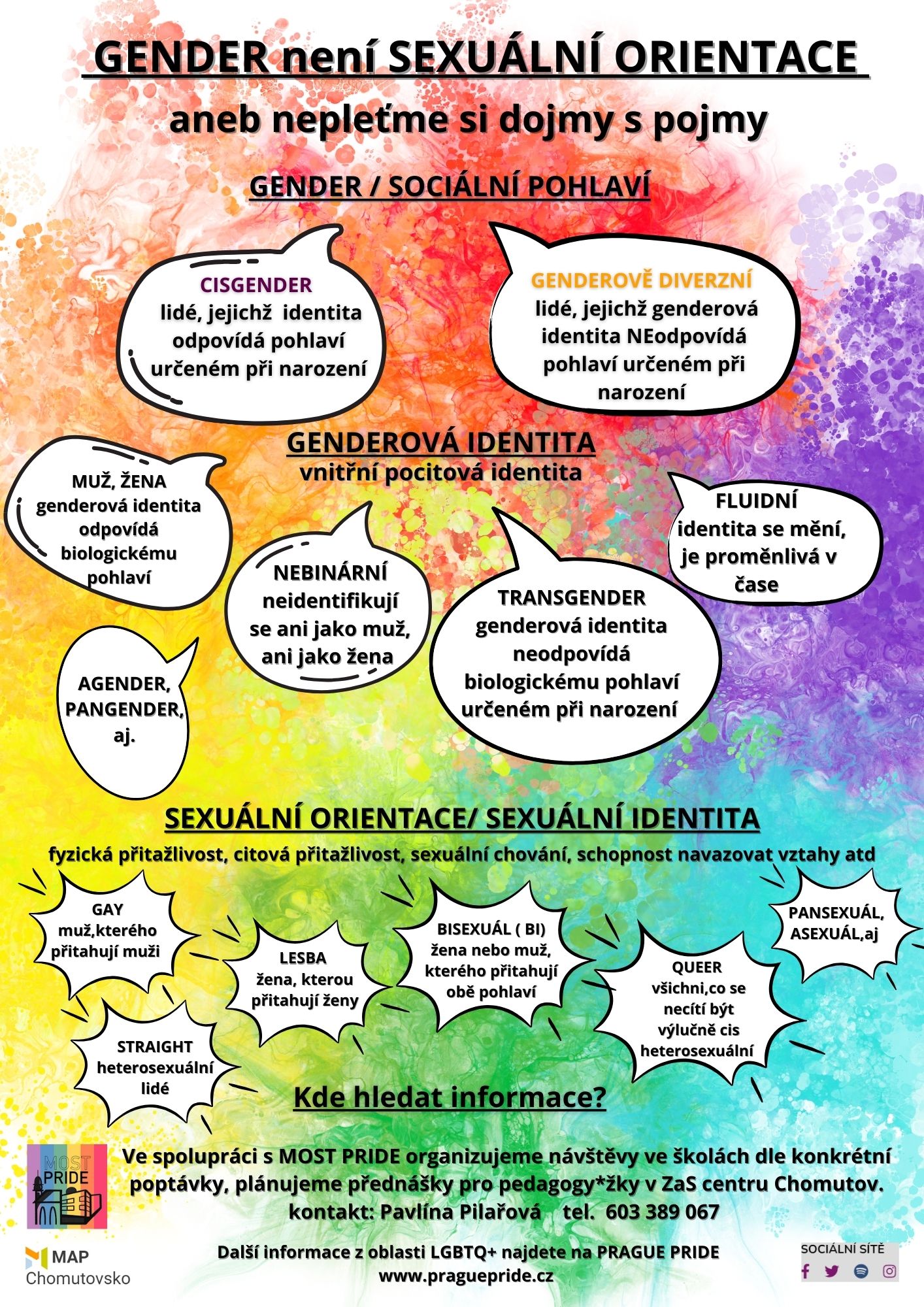 Sexuální identita a genderová identita? Jaký je rozdíl. Základní pojmy. Nabízíme v letáčku v příloze.