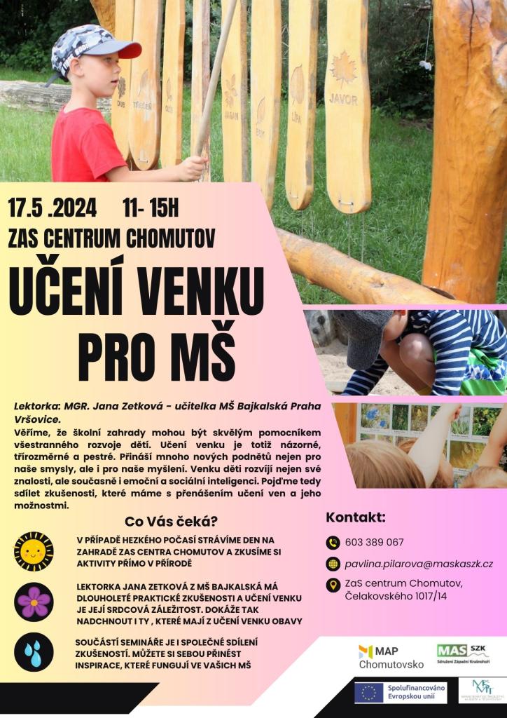 Lektorka: MGR. Jana Zetková - učitelka MŠ Bajkalská Praha Vršovice. Školní zahrady mohou být skvělým pomocníkem všestranného rozvoje dětí. Učení venku je totiž názorné, třírozměrné a pestré. Přináší mnoho nových podnětů nejen pro naše smysly, ale i pro naše myšlení. Venku děti rozvíjí nejen své znalosti, ale současně i emoční a sociální inteligenci.